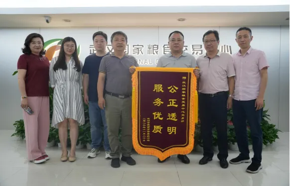 2024年6月5日,武汉市蔡储粮食储备有限公司专程为湖北粮网送来锦旗,并给交易部杨杰同志送来感谢信,对交易中心一直以来想企业之所想、急企业之所急,为企业排忧解难,提供热情周到的服务表示感谢。